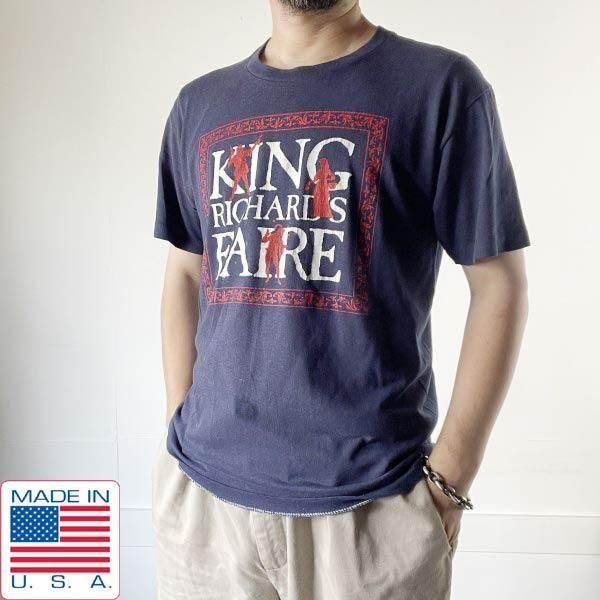 1985年製 USA製 KING RICHARD'S FAIRE 半袖 Tシャツ 紺系 L イベント 両面プリント アメリカ製 80s ビンテージ D152