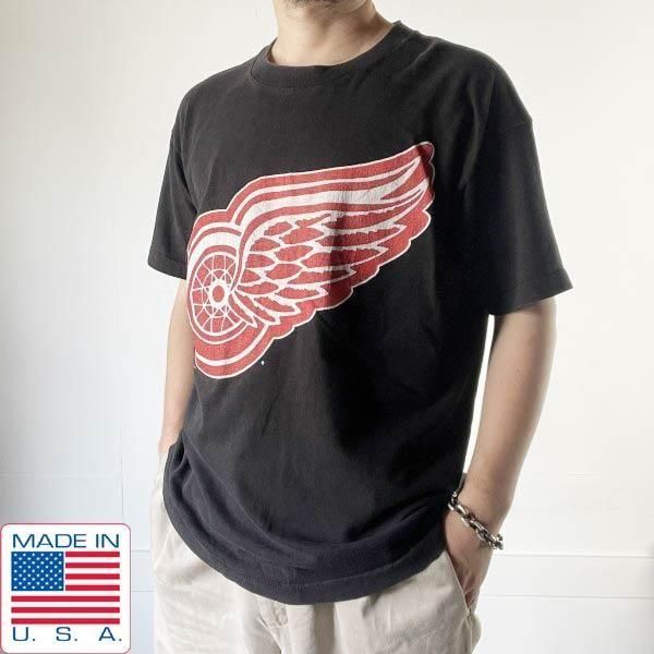 90s USA製 NHL デトロイト レッドウィングス 半袖 Tシャツ 黒 L ブラック アメリカ製 ビンテージ ナショナルホッケーリーグ D152