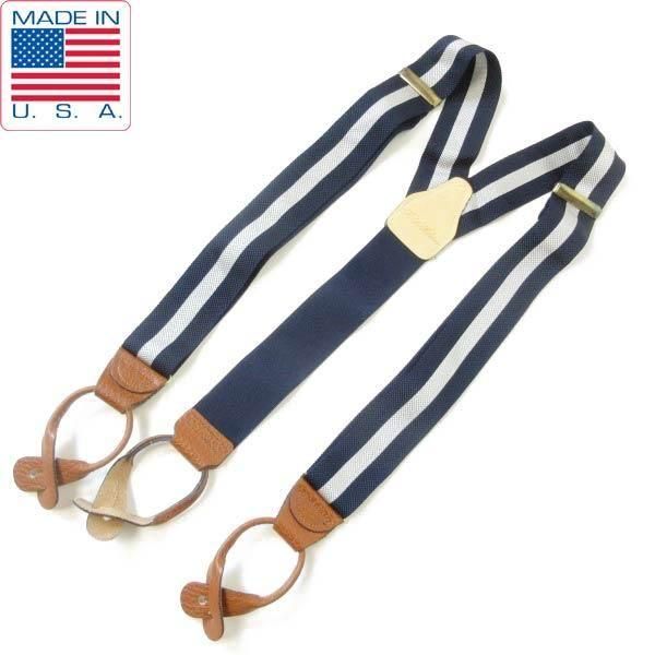 新品 USA製 ブルックスブラザーズ ボタンタブ式 Y型 サスペンダー 紺系 アメリカ製 ブレイシーズ ビジネス デッドストック D152