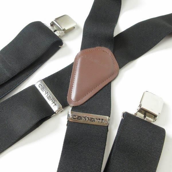 新品 Carhartt カーハート 伸縮素材×レザー X型 クリップ式 ワーク サスペンダー 黒 ブラック Xバック ブレイシーズ D152