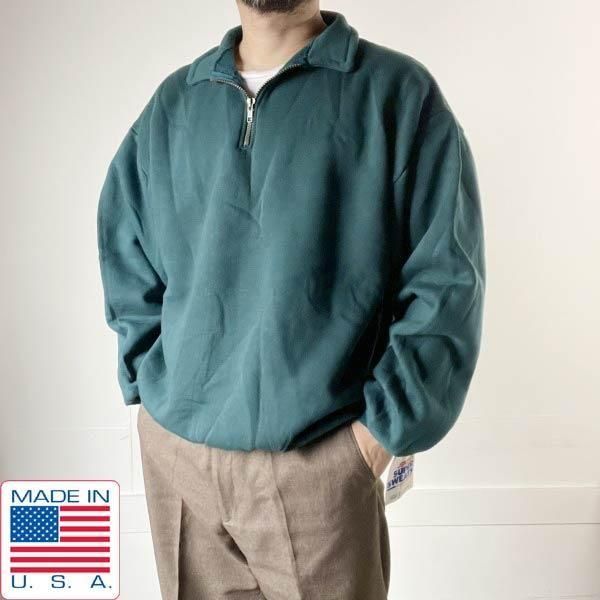 新品 90s USA製 JERZEES ハーフジップ スウェット L グリーン 無地 ジャージーズ クルーネック トレーナー ビンテージ D152
