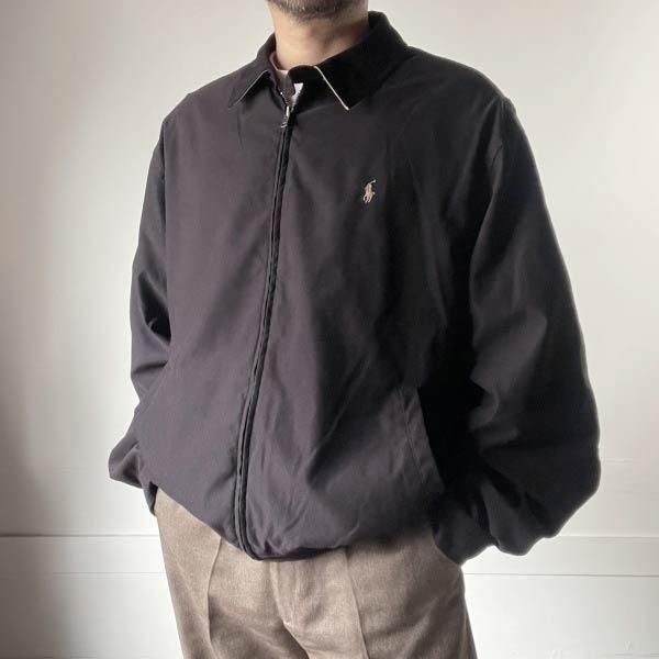 美品 90s Polo ポロ ラルフローレン ハリントン ジャケット 黒 XL ブルゾン スウィングトップ ブラック ビンテージ D152