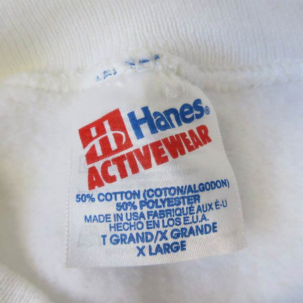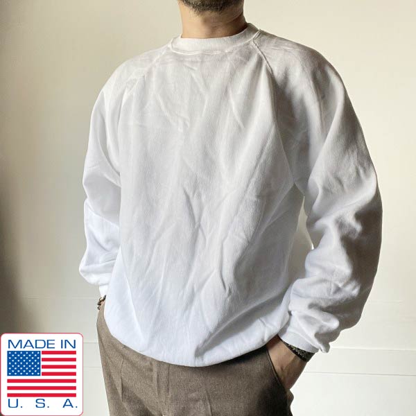新品 90s USA製 Hanes ヘインズ ブランク スウェット XL 白 無地 クルーネック トレーナー ビンテージ デッドストック D152