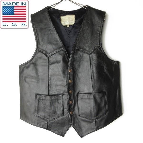 USA製 70s-80s Leatherland レザー ベスト 黒 44 M程度 ブラック アメリカ製 バイカー ビンテージ D152