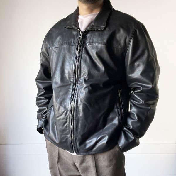 COLE HAAN コールハーン 短丈 レザー ジャケット 黒 XL ブラック ショート 革ジャン D152