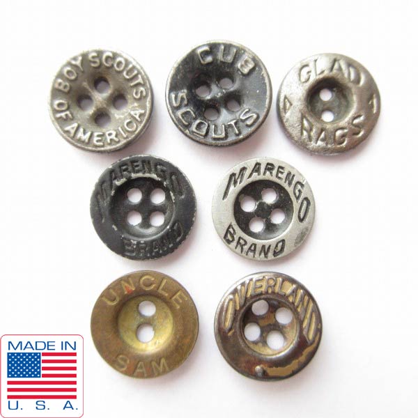USA製 ビンテージ メタル ボタン 7点セット 40s BSA,40s CUB SCOUT,GLAD RAGS,MARENGO BRAND,UNCLE SAM,OVERLAND リメイク D128