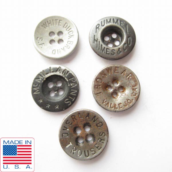 USA製 ビンテージ メタル ボタン 5点セット WHITE DUCK,RUMMEL HIMES,McMILLAN PANTS,IRONWEAR,OVERLAND TROUSERS リペア D128