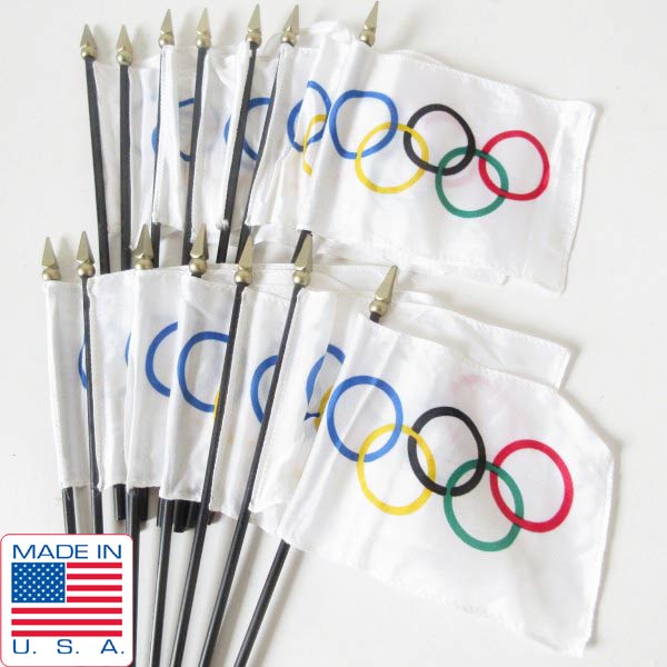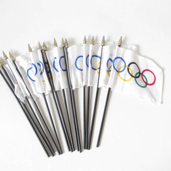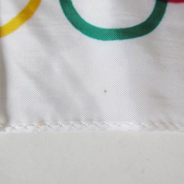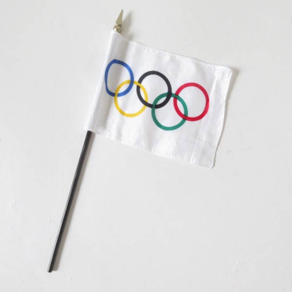 ナイロン系の生地に白ベースの五輪マークが入った小さな旗です。