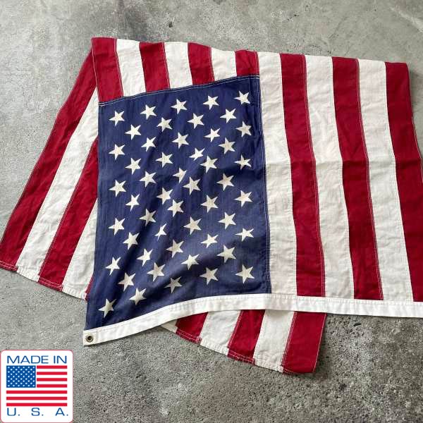 90s USA製 アメリカ国旗 星条旗 50星 コットン フラッグ 81cm×141cm インテリア ディスプレイ 店舗什器 背景生地 写真館 D128