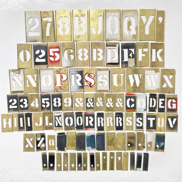 数字・アルファベット等のステンシル真鍮製プレートのサイズ・種類が不揃いのアソートセットです。