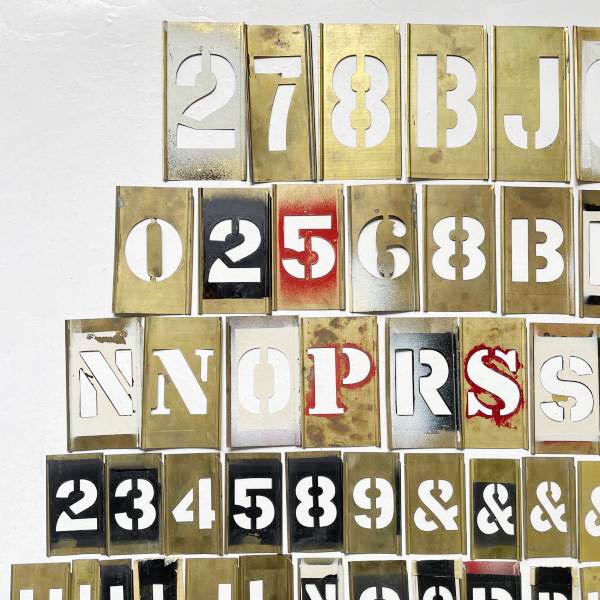 ビンテージ 英数字 ステンシル 真鍮製プレート アソートセット 店舗什器 ディスプレイ アルファベット アメカジ ミリタリー D128