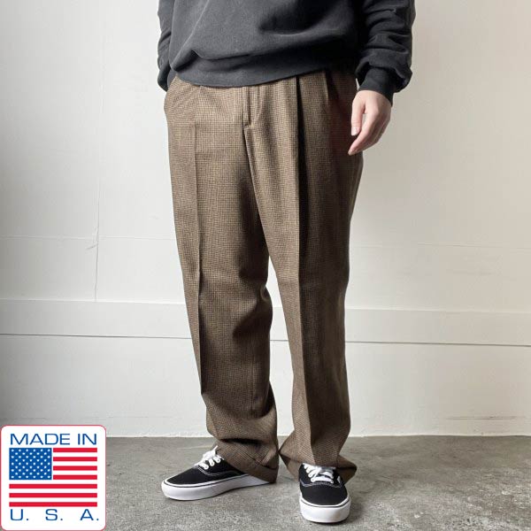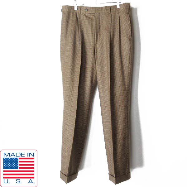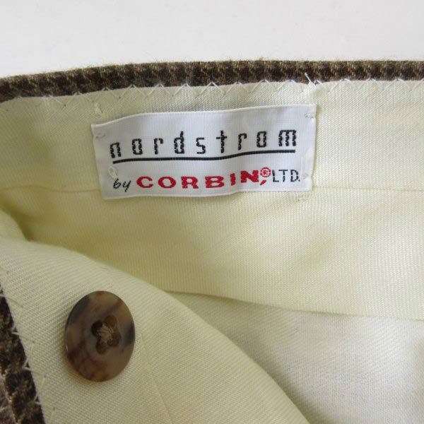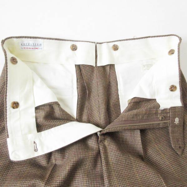 極美品 70s-80s USA製 ノードストローム×CORBIN 千鳥格子 ウール ツータック スラックス 実寸W34 アメリカ製 ビンテージ D153