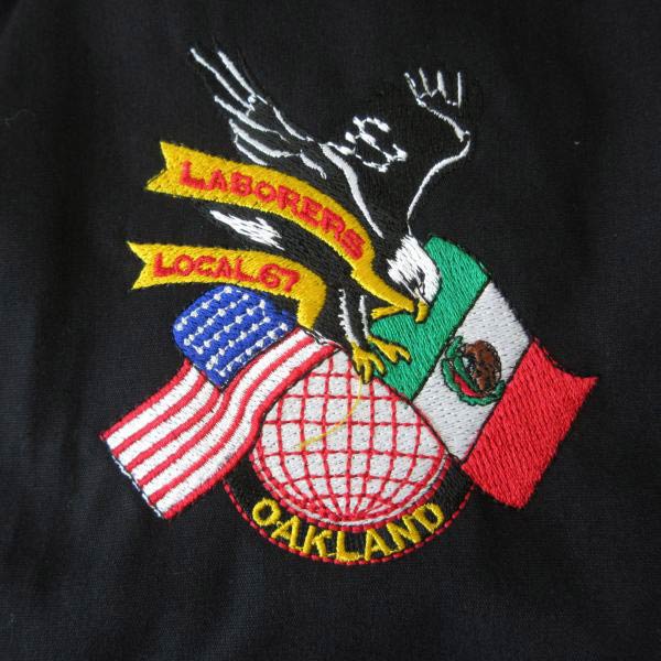 希少なアメリカ製。左胸にLABORERS LOCAL67 OAKLANDのアメリカらしいエンブレム刺繍入りです。