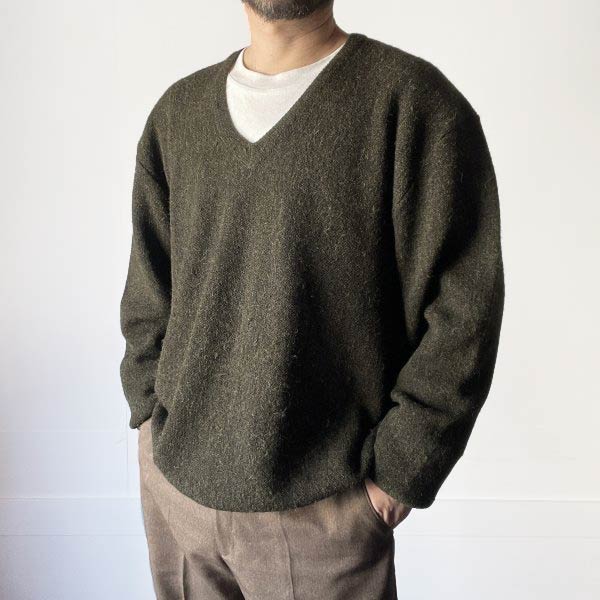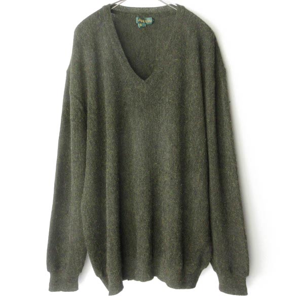 PERU製 ANDEAN アルパカ Vネック ニット 緑系 XXL セーター グリーン ビッグサイズ 大きいサイズ ビンテージ D153