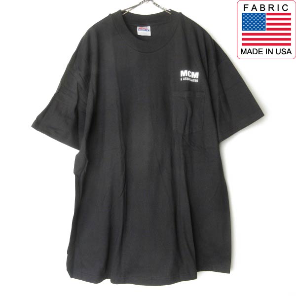 新品 90s MCM & ASSOCIATES 片ポケ 半袖 Tシャツ 黒 XL ヘインズ ブラック ビーフィー コットン 未使用品 デッドストック D153