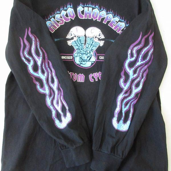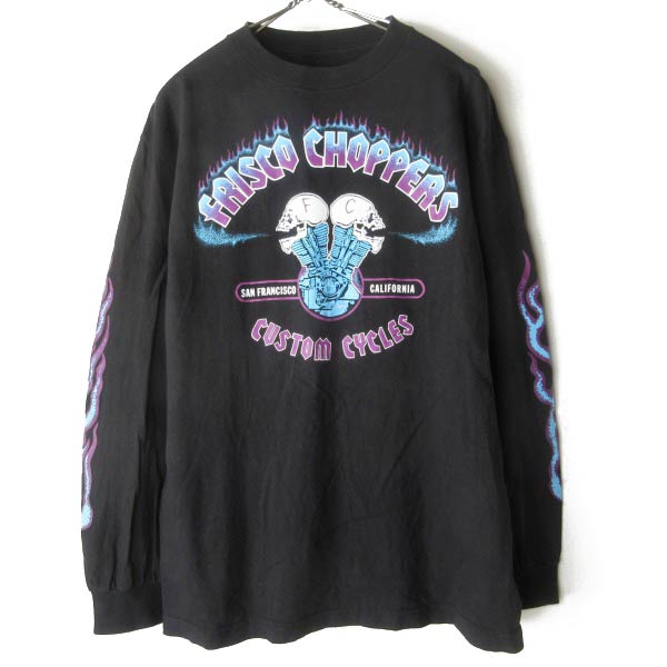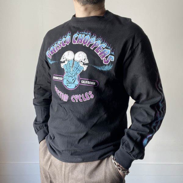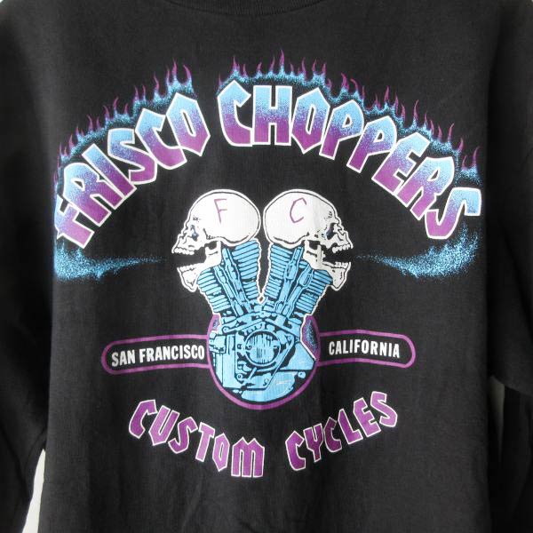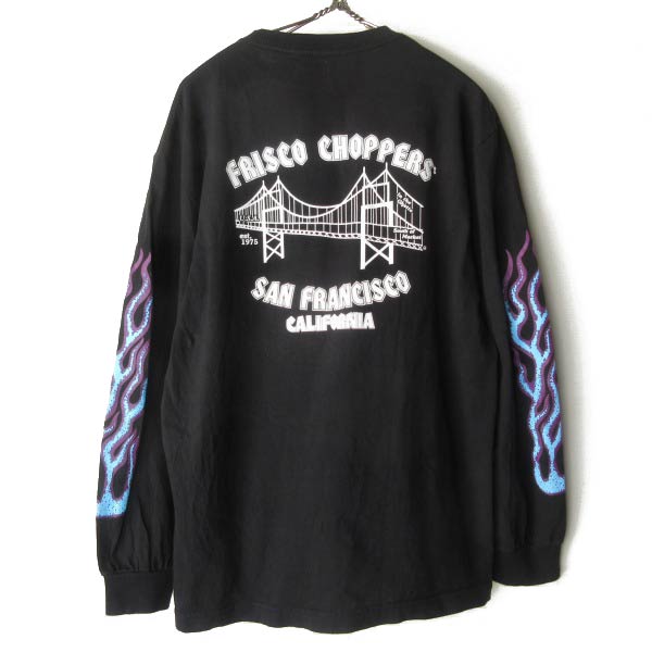美品 FRISCO CHOPPERS スカルモーター 長袖 Tシャツ 黒 S程度 両面プリント フリスコチョッパーズ フレームス スリーブ D153