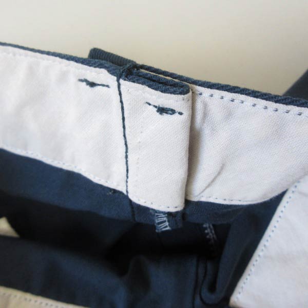 背面ウエスト部分に解くと2インチ程度ウエストを広げる事が出来る調整可能な縫い合わせは現行モデルにはないディテール。