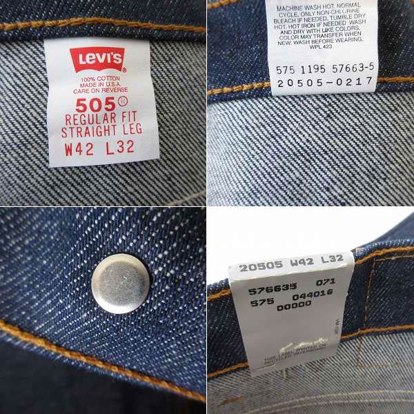 新品 1995年製 USA製 リーバイス 505 リジット ジーンズ W42 L32 濃紺 90s アメリカ製 ビンテージ デッドストック D153