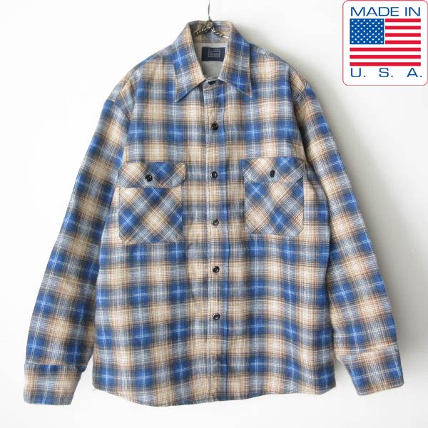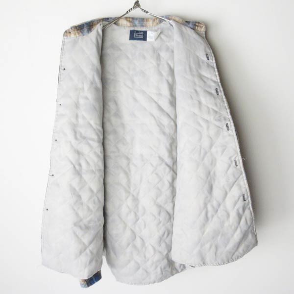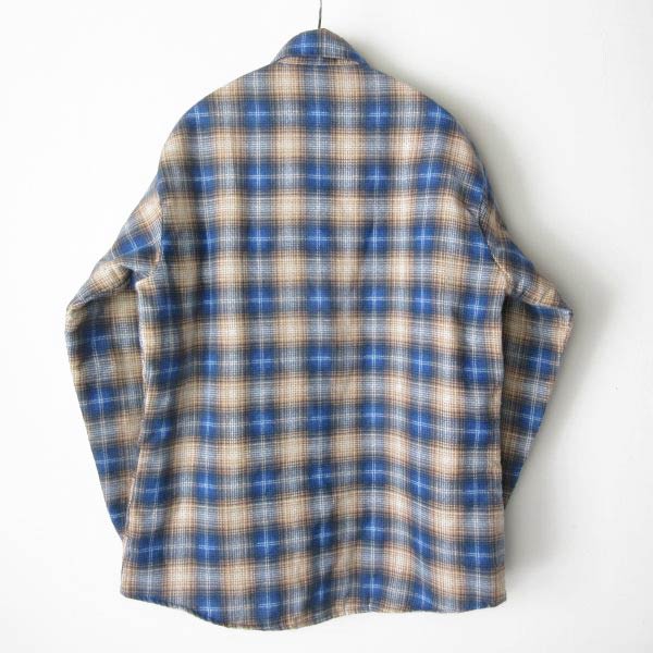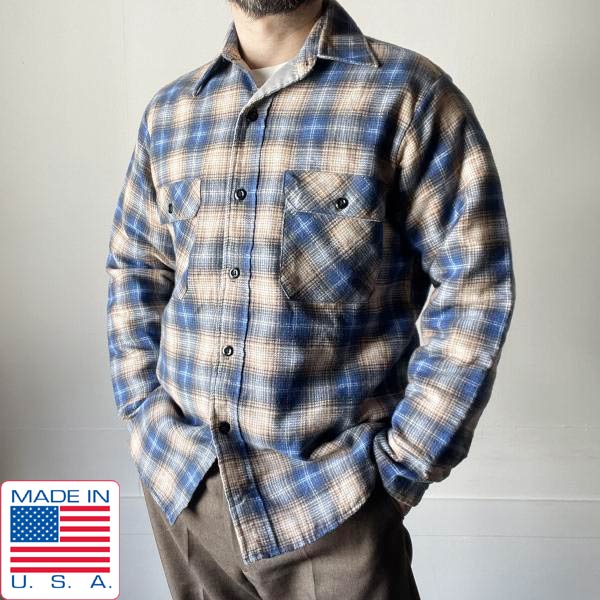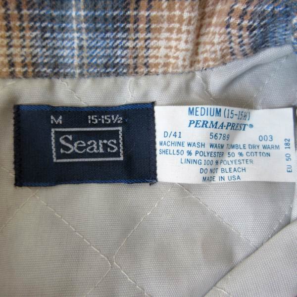 美品 70s-80s USA製 SEARS チェック柄 プリントネル シャツ M キルティングライナー付き シアーズ アメリカ製 ビンテージ D153