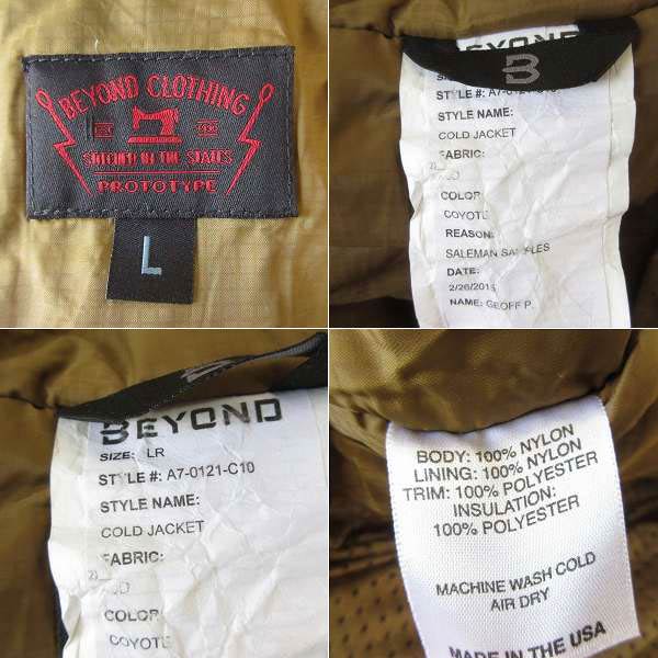 美品 USA製 BEYOND CLOTHING A7 コールド ジャケット L-R コヨーテ サンプル品 ハッピースーツ アメリカ製 D153