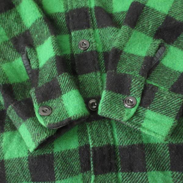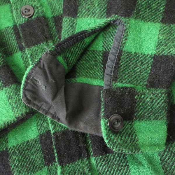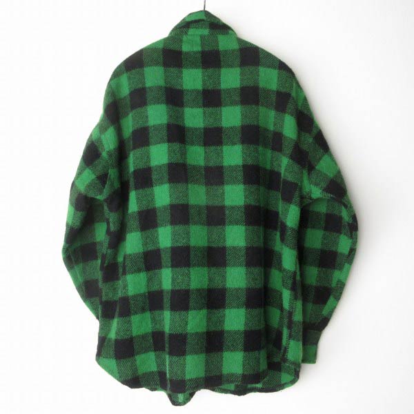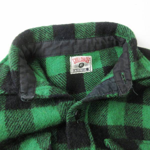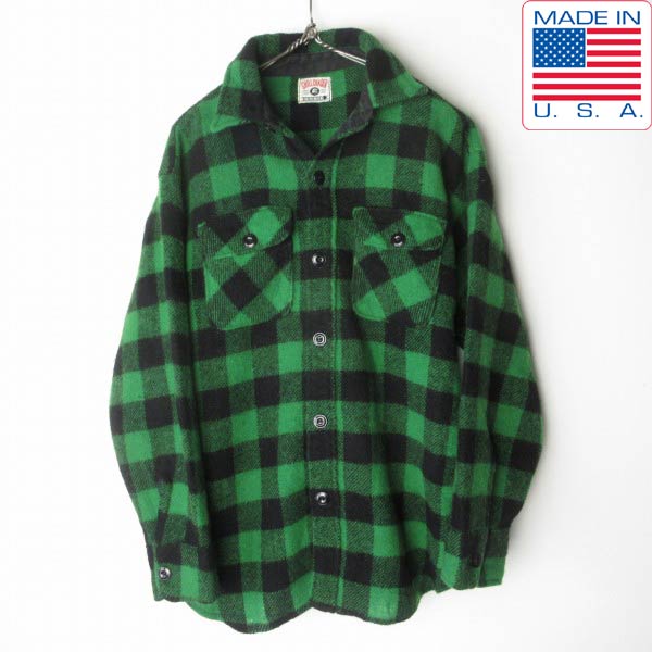 60s USA製 CHILL CHASER ブロック チェック ウール シャツ 緑×黒 M程度 バッファローチェック アメリカ製 ビンテージ D153