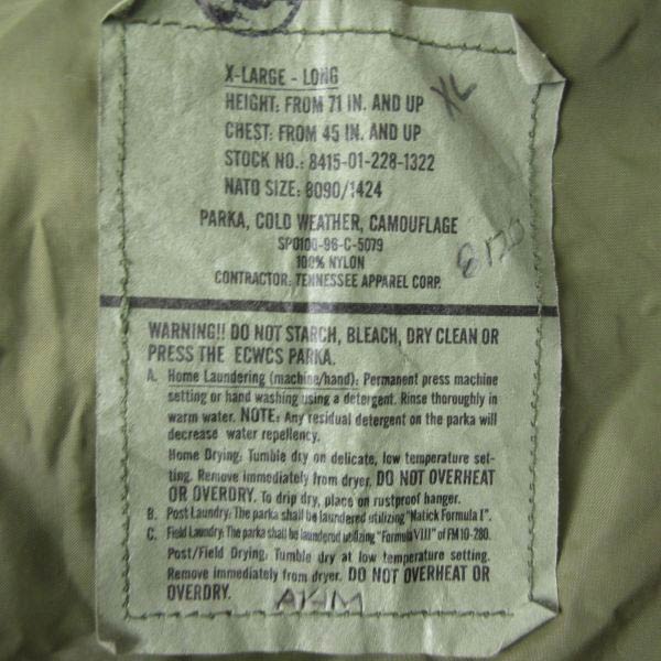 PARKA,COLD WEATHER, CAMOUFLAGE記載になります。