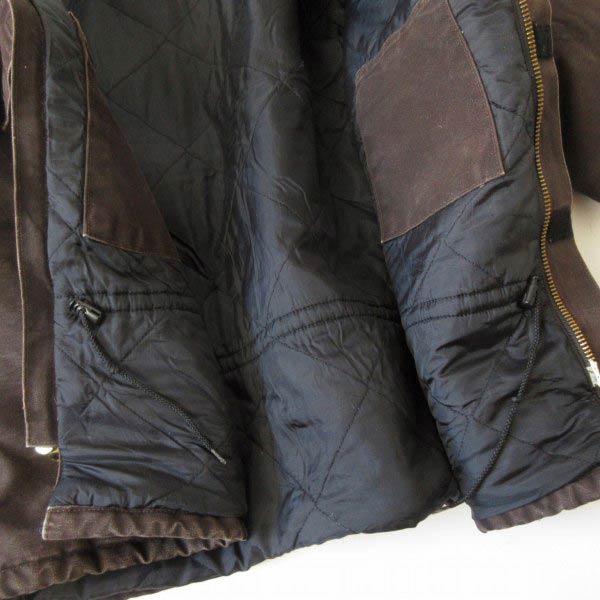 ウエスト内側にコード付きで絞って着用可能。袖先にはリブ付き。YKKダブルジップ。