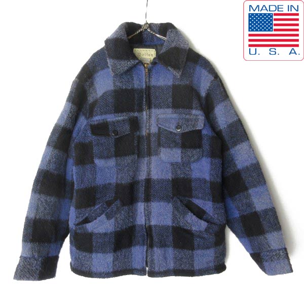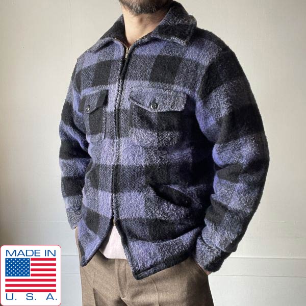70s USA製 melton 紫×黒 ブロックチェック ウール ジャケット M シンサレート レアカラー アメリカ製 ビンテージ D153