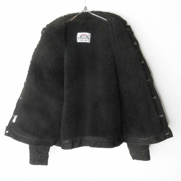 ブラックデニムのデニムジャケットは玉数が少なく人気が高いですが、裏ボアもブラックというダブルブラック仕様のレアな作りです。
