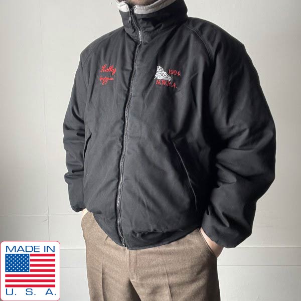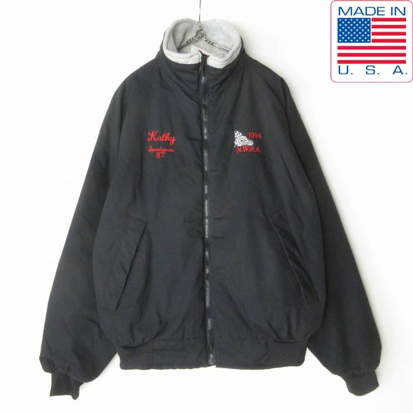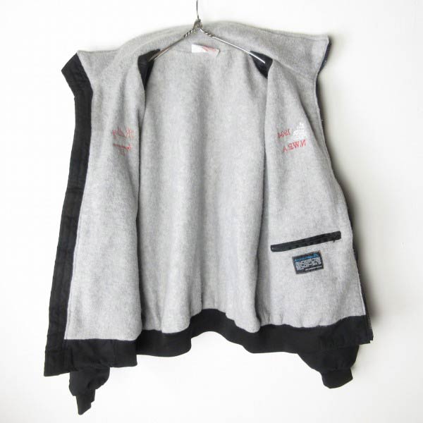 90s USA製 M.A.Klein 裏フリース ジップアップ ジャケット 黒 L ブラック 短丈 ブルゾン アメリカ製 ビンテージ D153