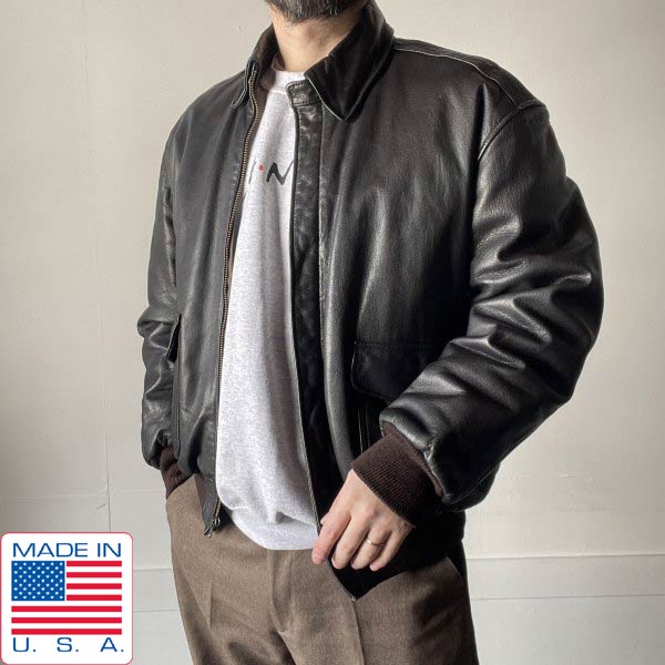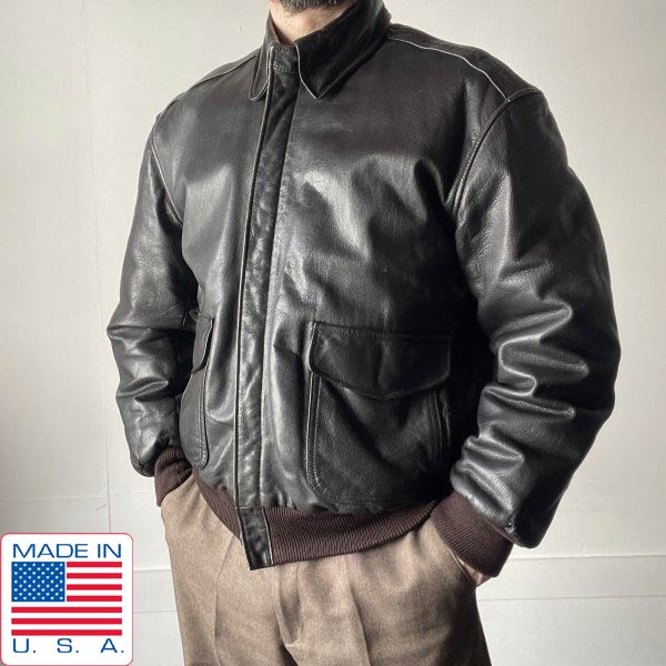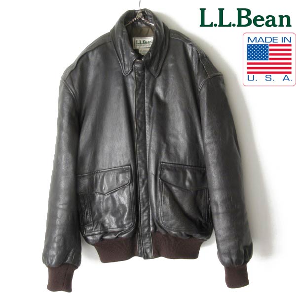 80s-90s USA製 L.L.Bean A-2 レザージャケット 40 L程度 ダークブラウン フライトジャケット エルエルビーン ビンテージ D153