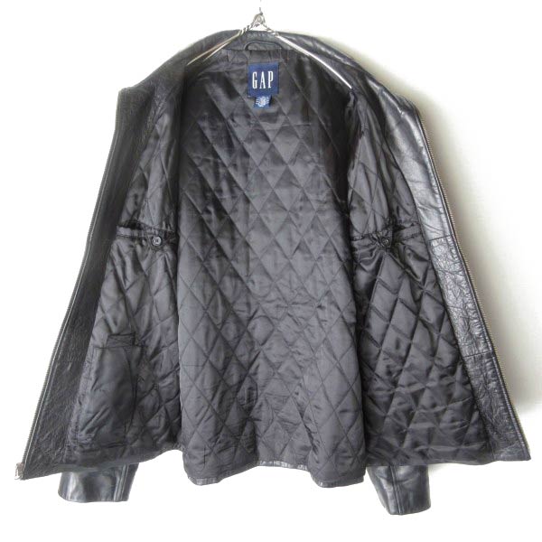 美品 90s GAP オールド ギャップ レザージャケット 黒 M ショートブルゾン シングルライダースtype 革ジャン ビンテージ D153