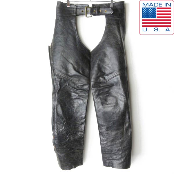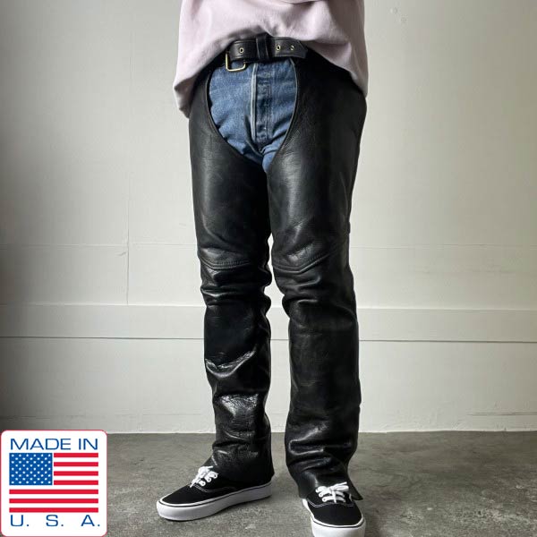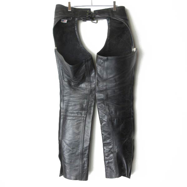 USA製 CLASSIC LEATHER 本革 レザー チャップス 黒 M (実寸W32〜36) ブラック アメリカ製 バイカー アメリカン D153