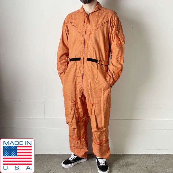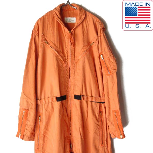 60s USA製 実物 米軍 US NAVY つなぎ 42 LONG インディアン オレンジ サマーフライト カバーオール アメリカ製 ビンテージ D153