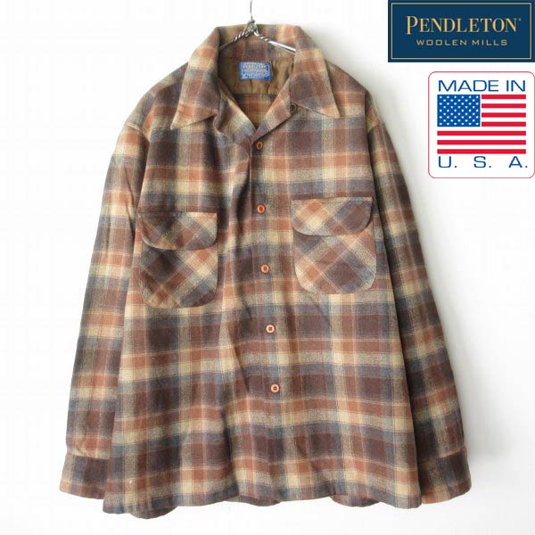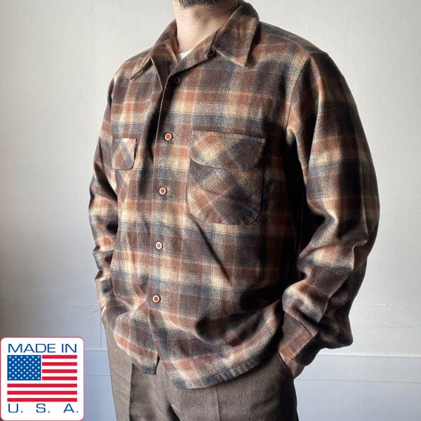70s USA製 PENDLETON チェック柄 ボードシャツ XL ペンドルトン ウール シャツ アメリカ製 ビンテージ D153