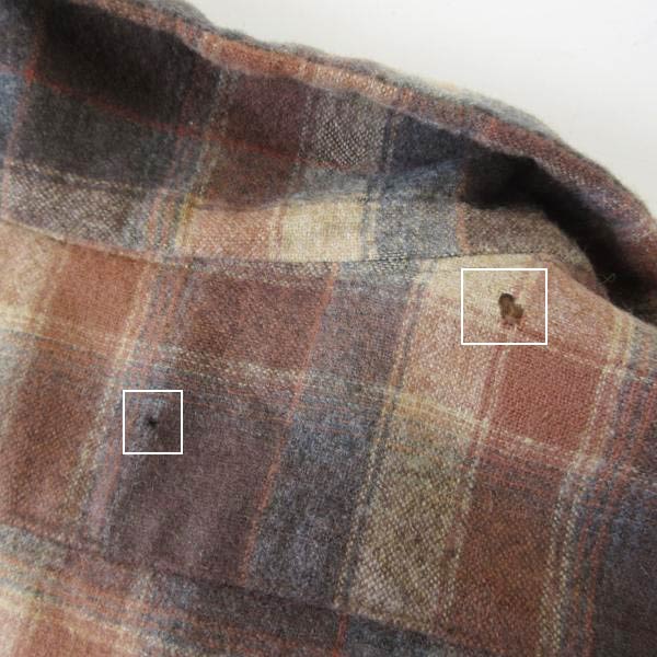背面襟下に2か所虫食いがありますが、裏生地がある箇所の為、インナーは見えません。