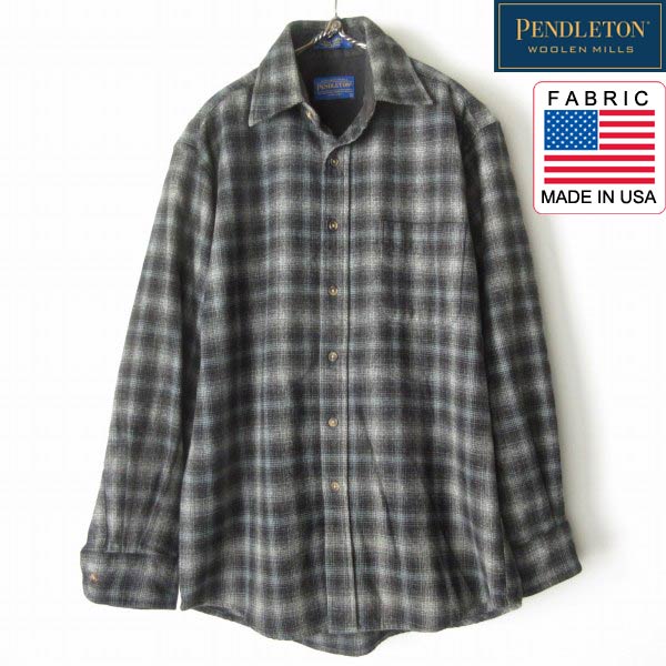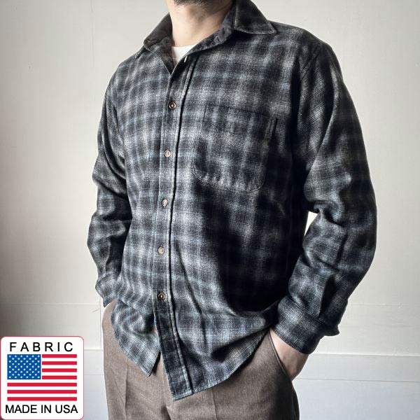 PENDLETON ペンドルトン オンブレチェック柄 ロッジシャツ S 黒グレー系 ウールシャツ ブラック グレー D153
