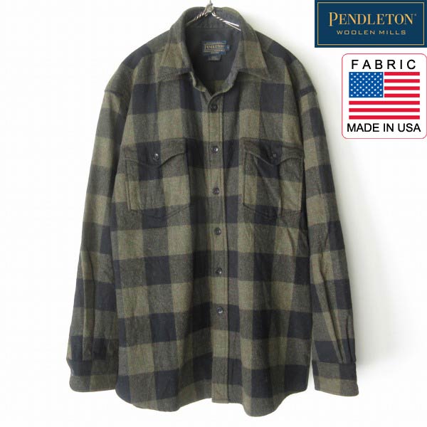 PENDLETON ペンドルトン ブロックチェック ガイドシャツ L 緑×黒 バッファローチェック グリーン×ブラック D153