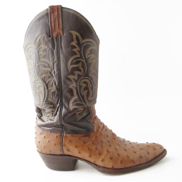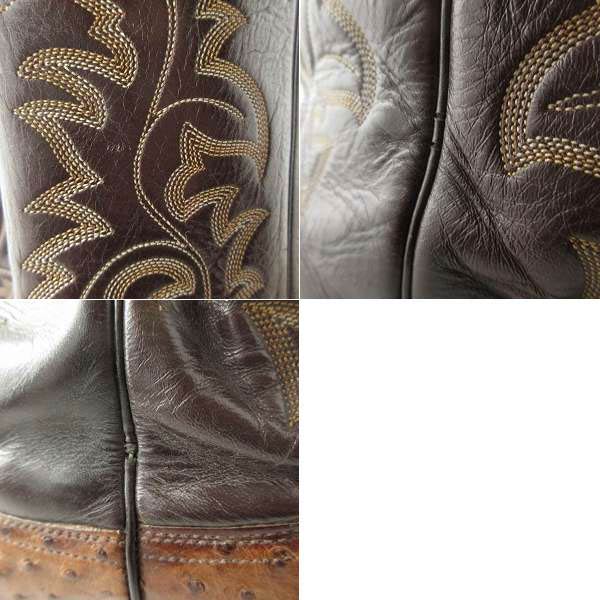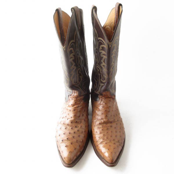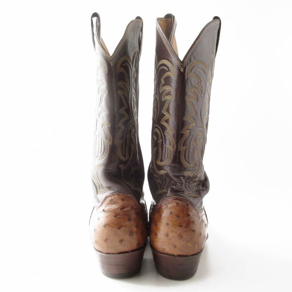 USA製 Justin ジャスティン オーストリッチ ウエスタン ブーツ 10.5D 28.5cm 茶系×ダークブラウン アメリカ製 カウボーイ D153