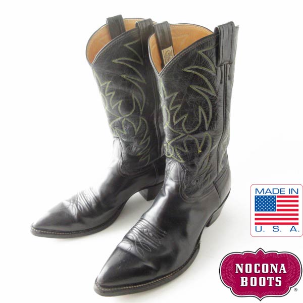 USA製 NOCONA ノコナ 上質レザー ウエスタン ブーツ 黒 12D 30cm 大きいサイズ ブラック アメリカ製 カウボーイ D153