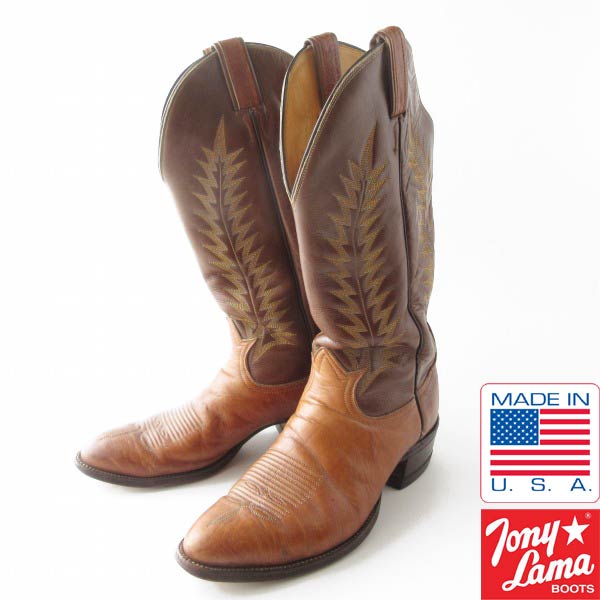 黒タグ USA製 Tony Lama トニーラマ ウエスタンブーツ 茶系 9.5D 27.5cm カウボーイブーツ アメリカ製 ビンテージ D153