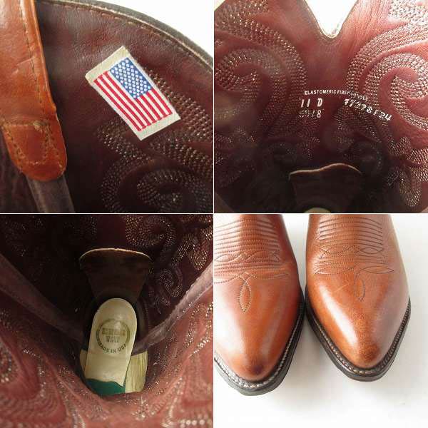美品 USA製 HERITAGE WEST ウエスタン ブーツ 茶系 11D 29cm 美シルエット ブラウン アメリカ製 カウボーイブーツ D153