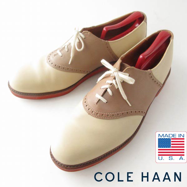 美品 USA製 COLE HAAN コールハーン コンビ サドルシューズ 12D 30cm ベージュ系×茶系 大きいサイズ アメリカ製 D153