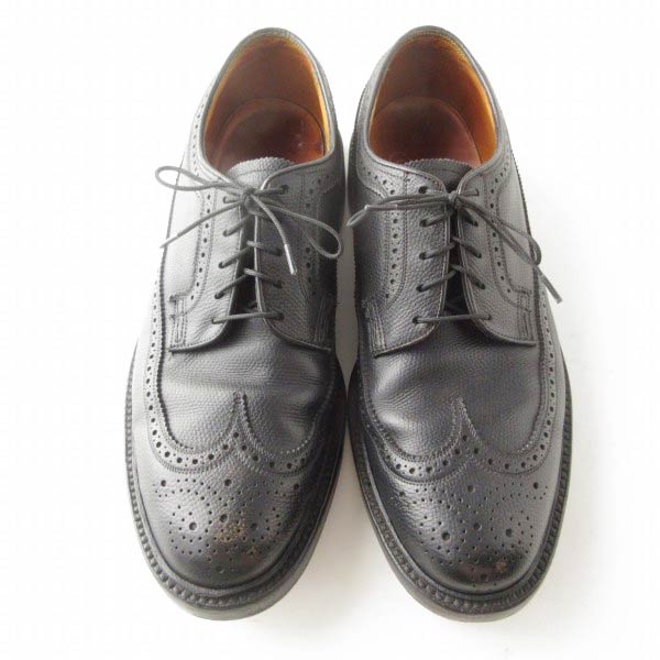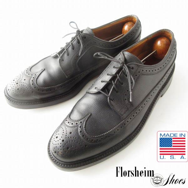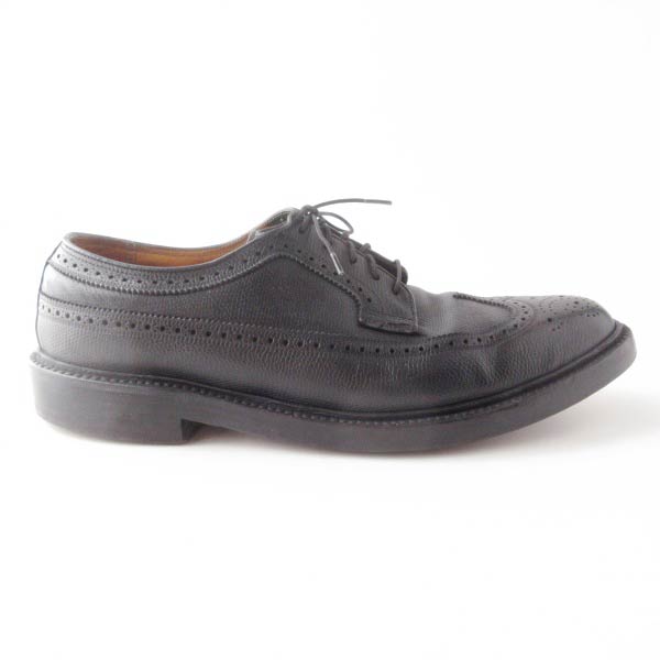 1975年製 USA製 フローシャイム インペリアル ロング ウィングチップ 8.5D 26.5cm 後染め黒 70s アメリカ製 ビンテージ D153