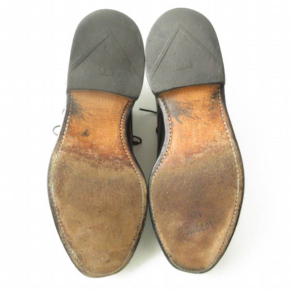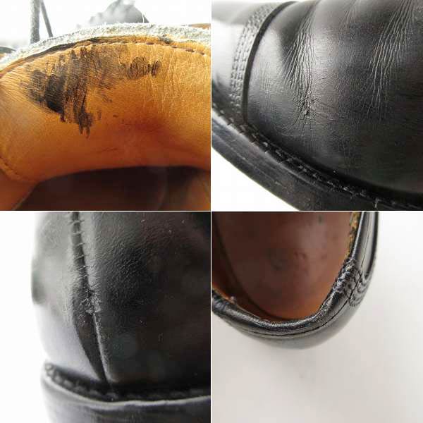 トゥやヒール、履き口にひっかき傷や細かな傷、タン裏に染料系の汚れ、インソールに後入れされていたと思われるインソール跡があります。
