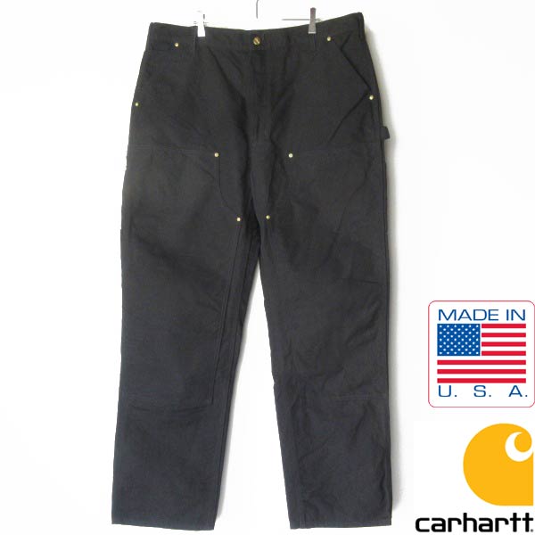 美品 USA製 carhartt ダック ダブルニー ペインターパンツ ブラック 40×34 カーハート パンツ 黒 アメリカ製 D153