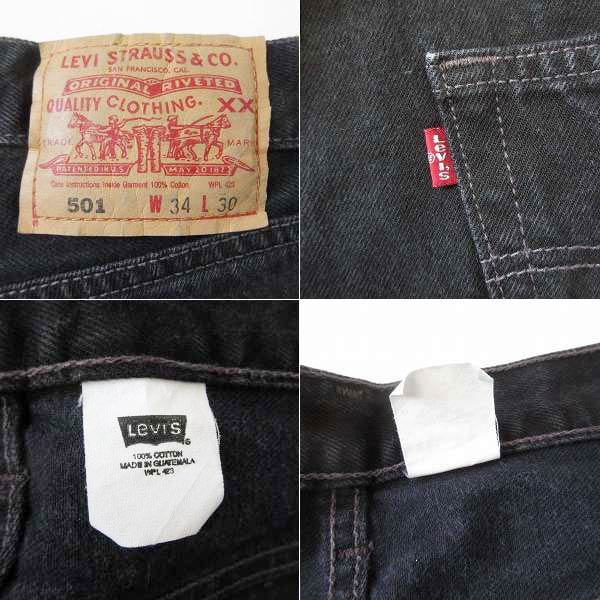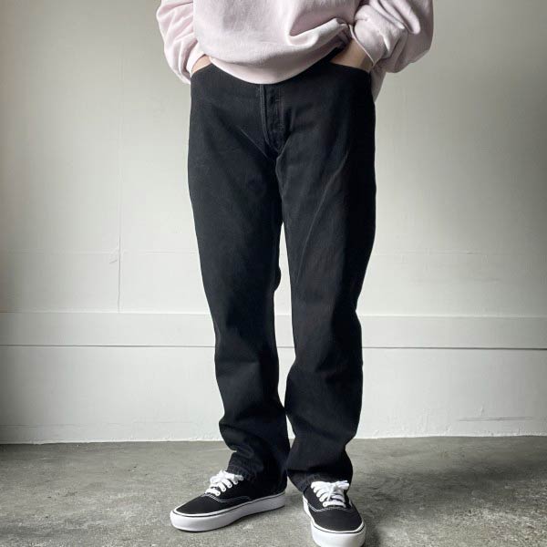 美品 00s リーバイス 501 後染め ブラック ジーンズ W34 L30(実寸W33 L29.5)濃い黒 サルファブラック ビンテージ D153