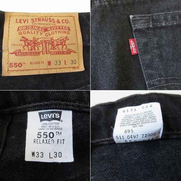 美品 1997年製 USA製 リーバイス 550 後染め ブラック ジーンズ W33 L30 黒 90s サルファ ビンテージ D153