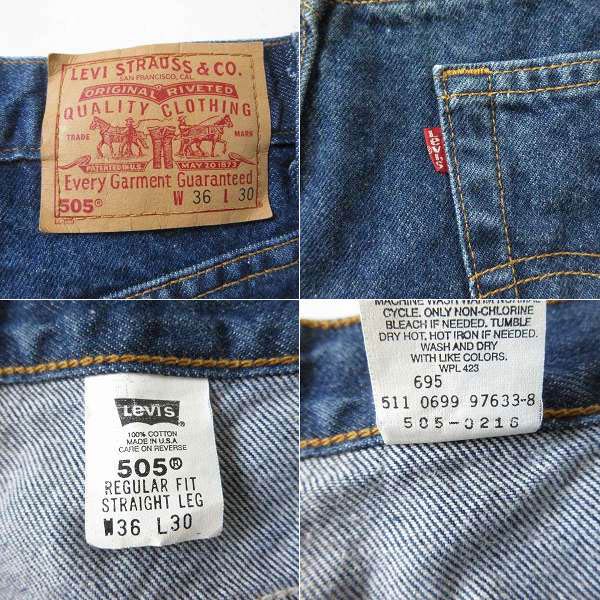 美品 1999年製 USA製 リーバイス 505 濃いめ ジーンズ W36 L30(実寸W34 L29.5)希少レングス 90s アメリカ製 ビンテージ D153
