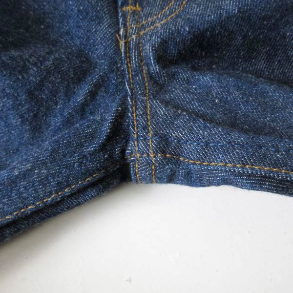 古いジーンズに見られる股下インシームの擦り切れはありません。